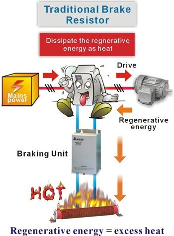 Replaces traditional braking resistor for cost savings, space savings, and energy savings.