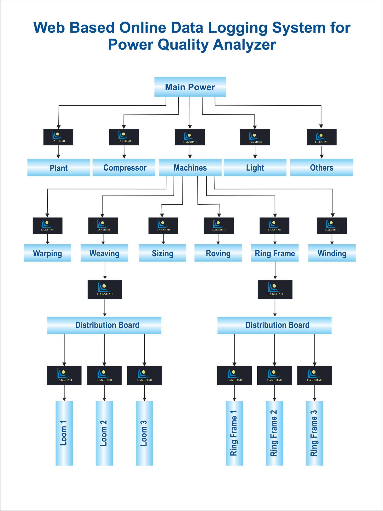 The Data Logging system hardware consists of Microcontroller, Voltage Sensing Modules,Current Transformer and etc. Captured data(Phase Voltages,Line Voltages, Line Currents,Frequency,Power Factor, Power Consumed) can be collected via voltage sensing modules and current transformers. Collected data will be transmitted with a time interval to the central server for the further process.