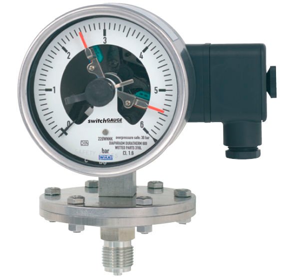 For the control of various applications like compressors, pumps, hooters etc., these electrical contact pressure gauges are to be used. The selection criteria for the contacts shall depend on either increasing or decreasing pressure. Inductive contacts operate without physical contact and thus have no unfavorable effects on the pressure measuring system. However the usage of control unit along with booster relay is advisable where the load current is more than 1 Amperes. The resistive contacts are selected for controlling linear elements.