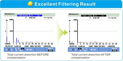 Delta's Active Power Filter - APF2000 is a power filter device that can monitor load current and filter harmonics in real-time to maintain a clean line current. It monitors the load current in real-time using a current transformer and injects the exact opposite phase to the network of components that are to be filtered. It can also provide leading and lagging reactive current in real-time to improve the power factor and compensate reactive power.