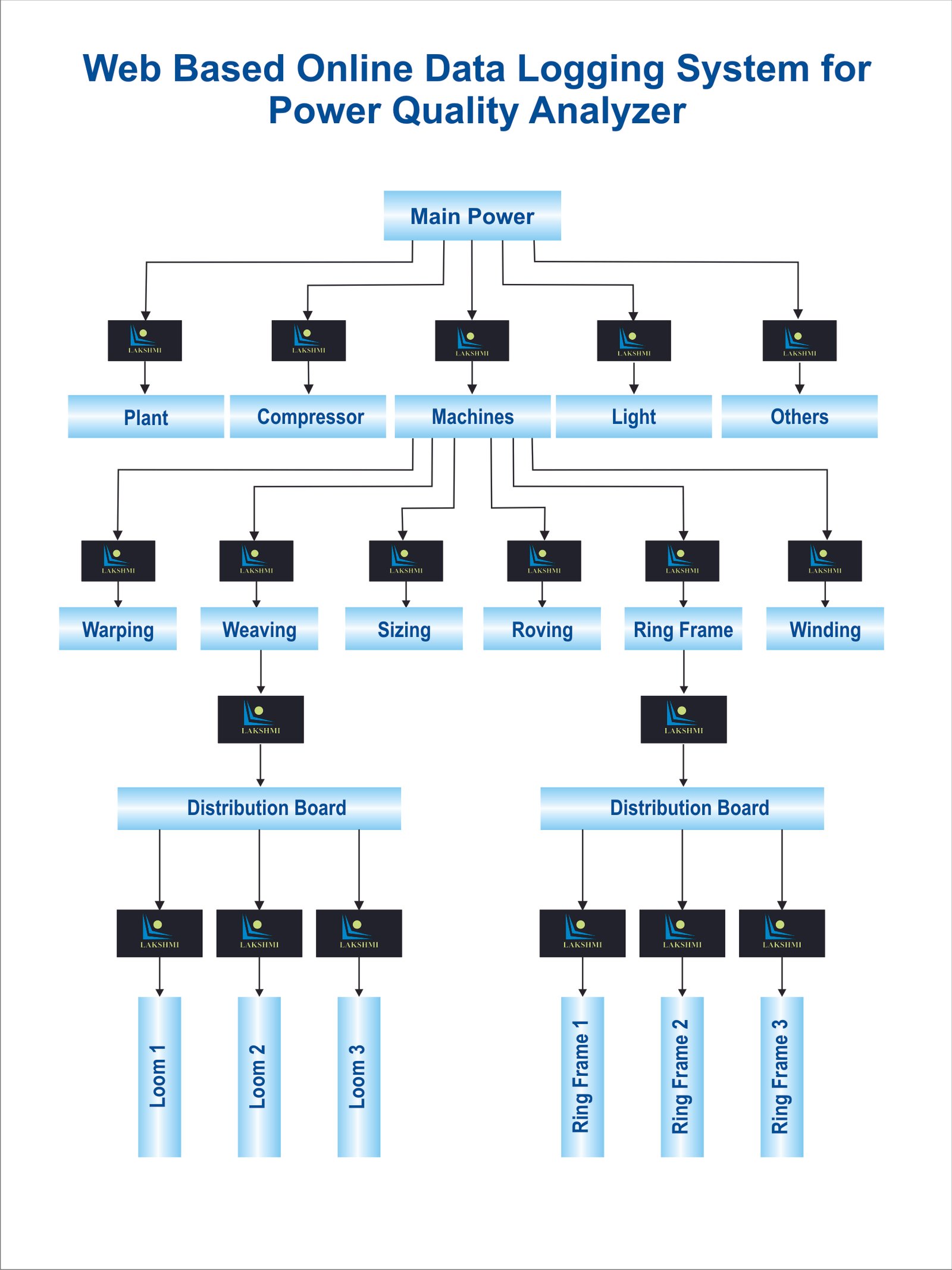 The Data Logging system hardware consists of Microcontroller, Voltage Sensing Modules,Current Transformer and etc. Captured data(Phase Voltages,Line Voltages, Line Currents,Frequency,Power Factor, Power Consumed) can be collected via voltage sensing modules and current transformers. Collected data will be transmitted with a time interval to the central server for the further process.